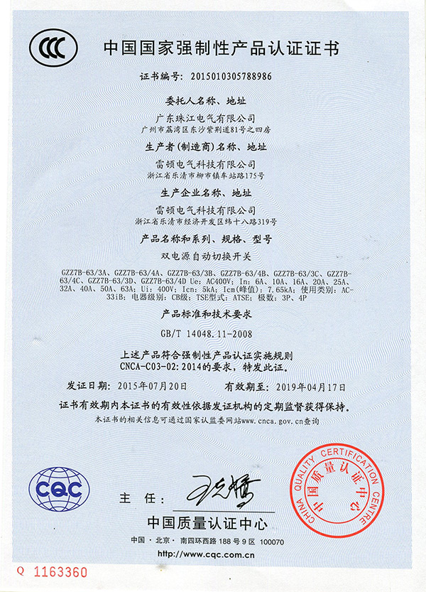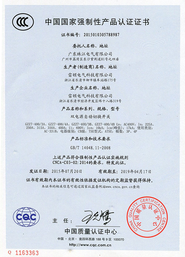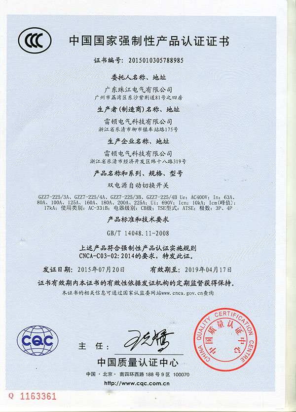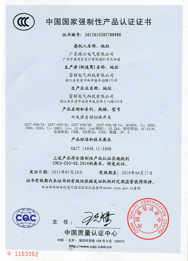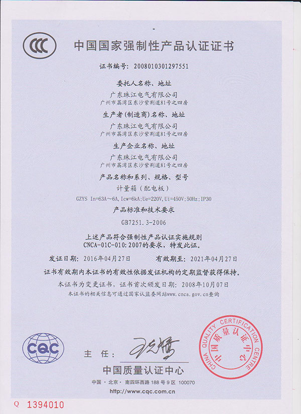 珠江电气始终坚信,只有坚实的产品质量才能成就一流的企业。因此,我们坚持以质取胜,竭诚为顾客提供先进、安全、可靠、满意的产品。并提出了以人为本,求精创新的质量方针;以“用户对产品和服务满意率100%”作为质量目标;并进行质量承诺:全体员工不允许有偏离质量方针的行为,提供的产品符合国家法令、法规要求,提供的产品符合用户要求,对产品实行终身服务。